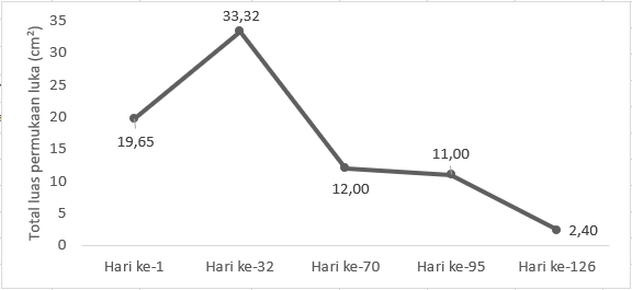 Grafik. Total luas permukaan luka seiring waktu dengan terapi secretome.