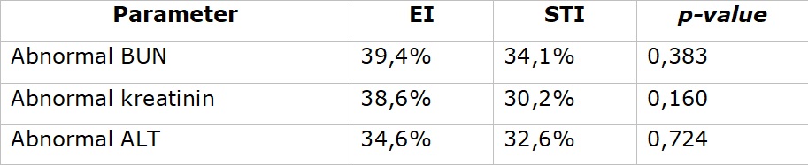 Clinical effectiveness: EI: 75,6%, STI: 56,6%, p = 0,007