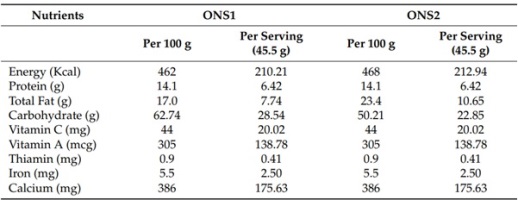 · Proporsi anak dengan asupan nutrisi yang cukup meningkat secara signifikan pada hari ke-90 pada kelompok yang diberikan suplemen ONS dibandingkan dengan kelompok kontrol (p <0,05), terutama untuk kadar lemak total, kalsium, vitamin A, vitamin C, dan tiamin.