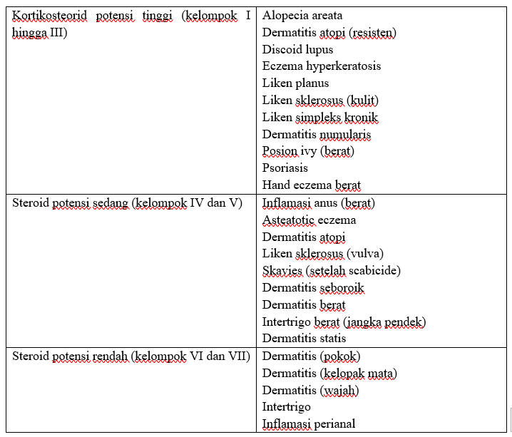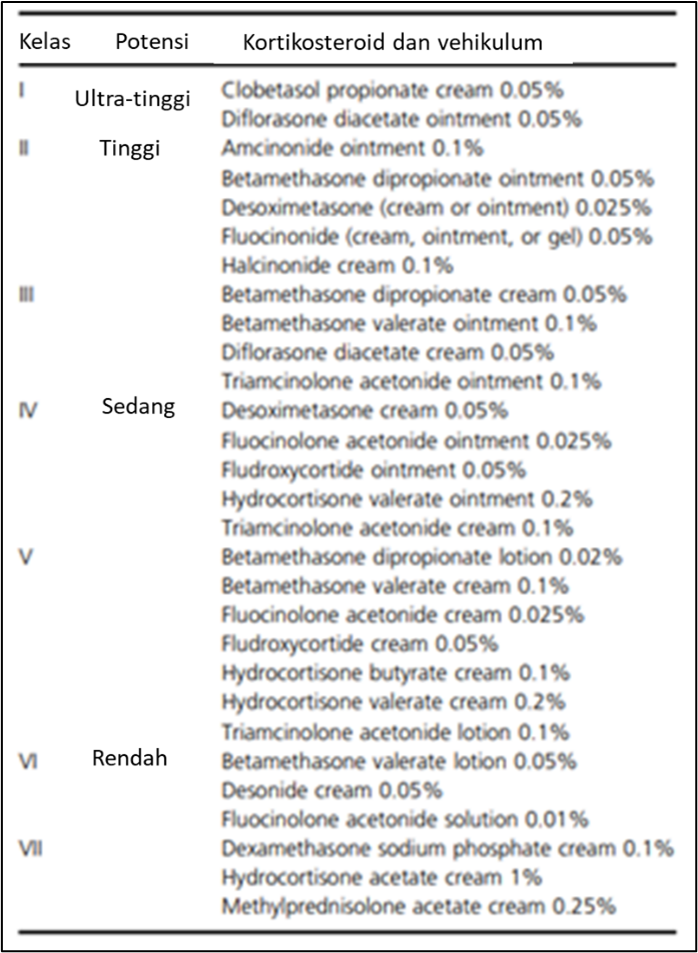 Tabel 1. Klasifikasi potensi kortikosteroid topikal menurut World Health Organization (WHO).3