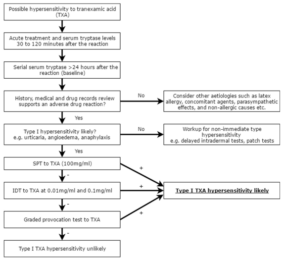 * SPT: Skin Prick Test, IDT: Intra-Dermal Test, TXA: Tranexamic Acid
